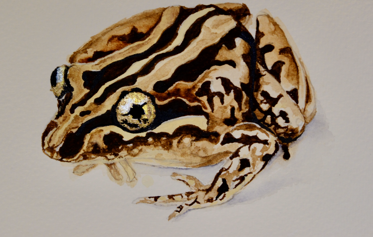 Marsh Frogs grow up to 7.5cm in length and have golden eyes. Being a terrestrial amphibian, their fingers and toes are not webbed and have no discs. A diet of moths and insects keep them well fed in the forest floor along the east coast of Australia. Their striped markings camouflage them amongst the leaf litter around streams and ponds.